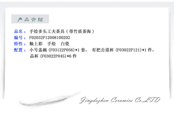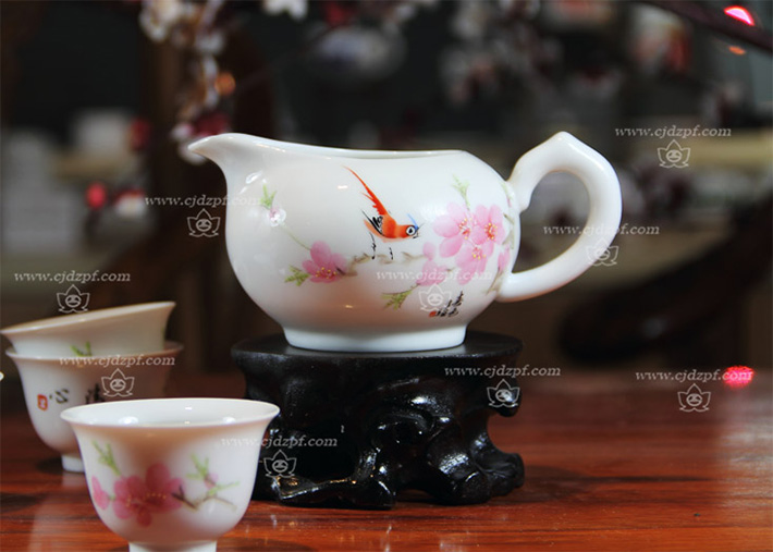 手繪功夫茶具(竹質(zhì)茶海)水點桃花