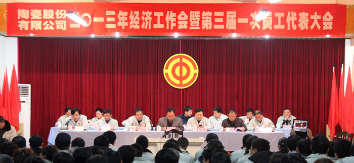 在市政協(xié)、市人大“兩會”勝利閉幕之際, 2013年1月17日下午,景德鎮(zhèn)陶瓷股份有限公司2013年經(jīng)濟(jì)工作會暨第三屆一次員工代表大會在公司五樓會議室隆重召開。