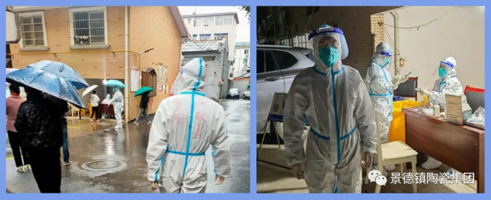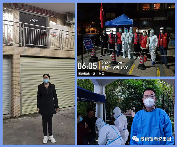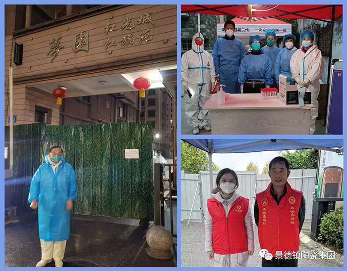 班子成員靠前指揮、科學(xué)調(diào)度、干在一線。景陶集團(tuán)黨委書記、董事長周敏建既是集團(tuán)公司疫情防控工作總指揮,又是所在社區(qū)居住樓樓長,同時,還以黨員志愿者身份,每天堅(jiān)守在防疫一線。
