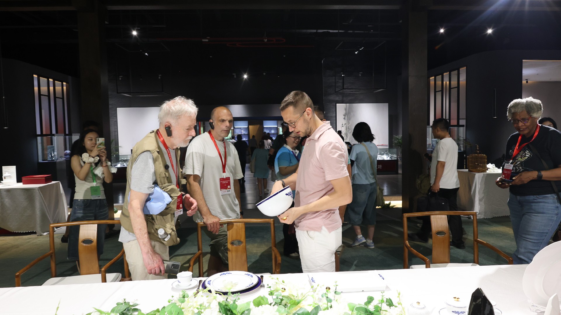 在國瓷館二樓的國宴瓷展區(qū),采風團成員跟隨講解,饒有興致地聆聽國宴用瓷背后的經(jīng)典故事,深入了解紅葉陶瓷的發(fā)展歷程。行至專為宴請外國元首設計的瀛臺《如意》系列國宴瓷前,其精美的紋飾、獨特的器型立刻吸引了眾人的目光,記者們頻頻點頭贊嘆,紛紛舉起相機記錄留念。面對上海APEC會議用瓷,采風記者盛贊其為中西方文化完美融合的典范,是文明交流互鑒的璀璨結(jié)晶。在青花玲瓏雙蕾花系列展臺前,記者們細細品味著瓷器靈動的線條與別致的造型,對如何燒制出寶石般晶瑩剔透的玲瓏工藝充滿好奇。王小勤副總經(jīng)理對此進行了詳實專業(yè)的解答,令各國記者深感意猶未盡,駐足良久。